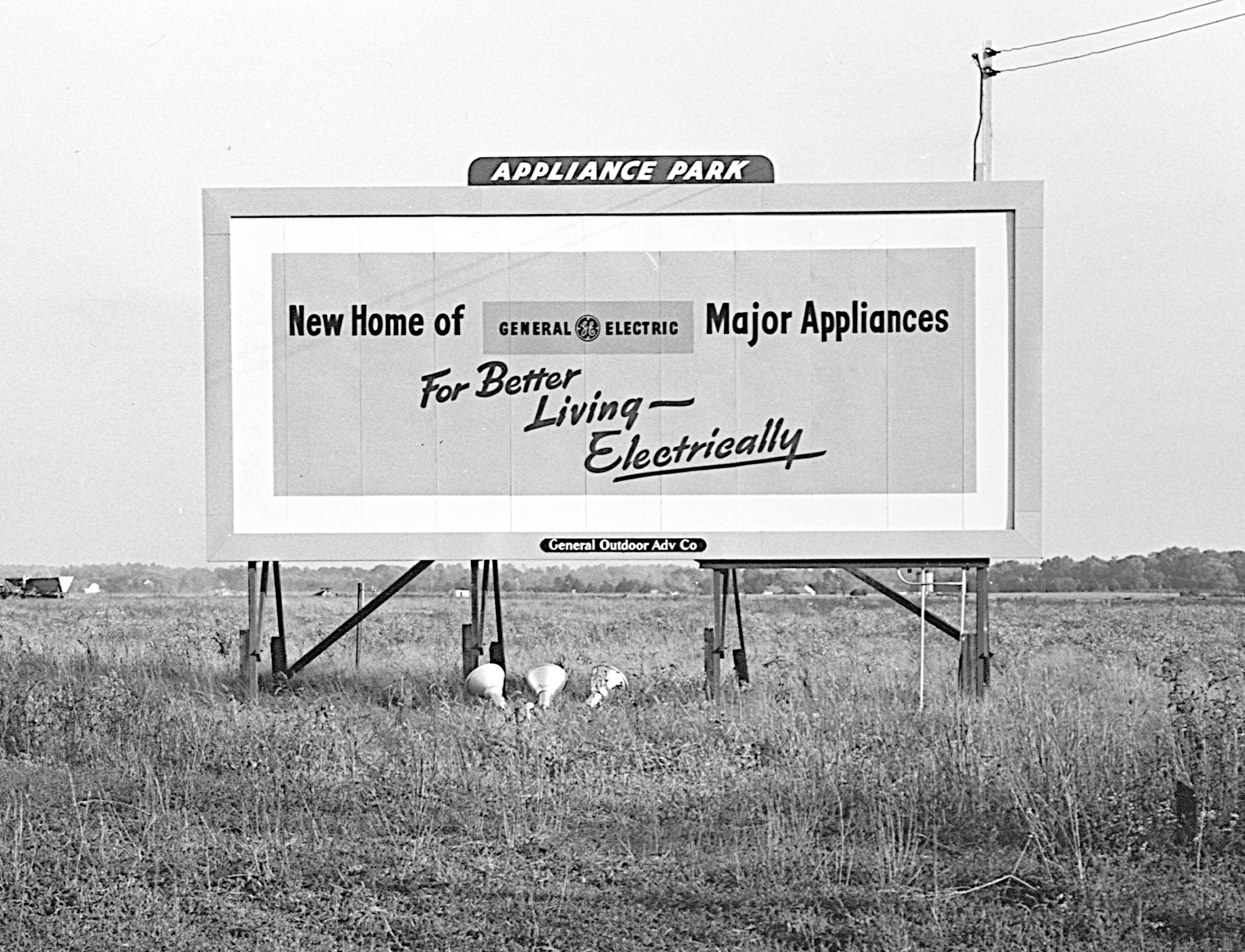 The first ”sign” of the coming of Appliance Park was a billboard located on the farmland running parallel to Shepherdsville Road in 1950.Elfun Historical Society, 1987, A Walk Through the Park